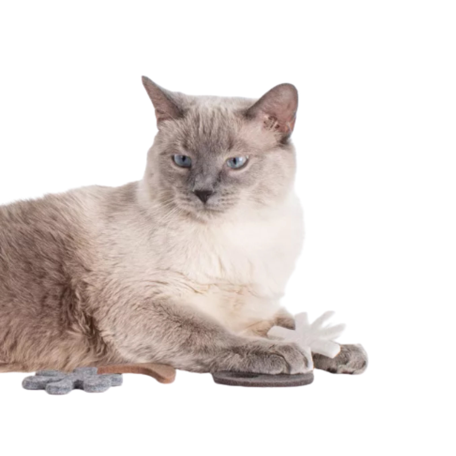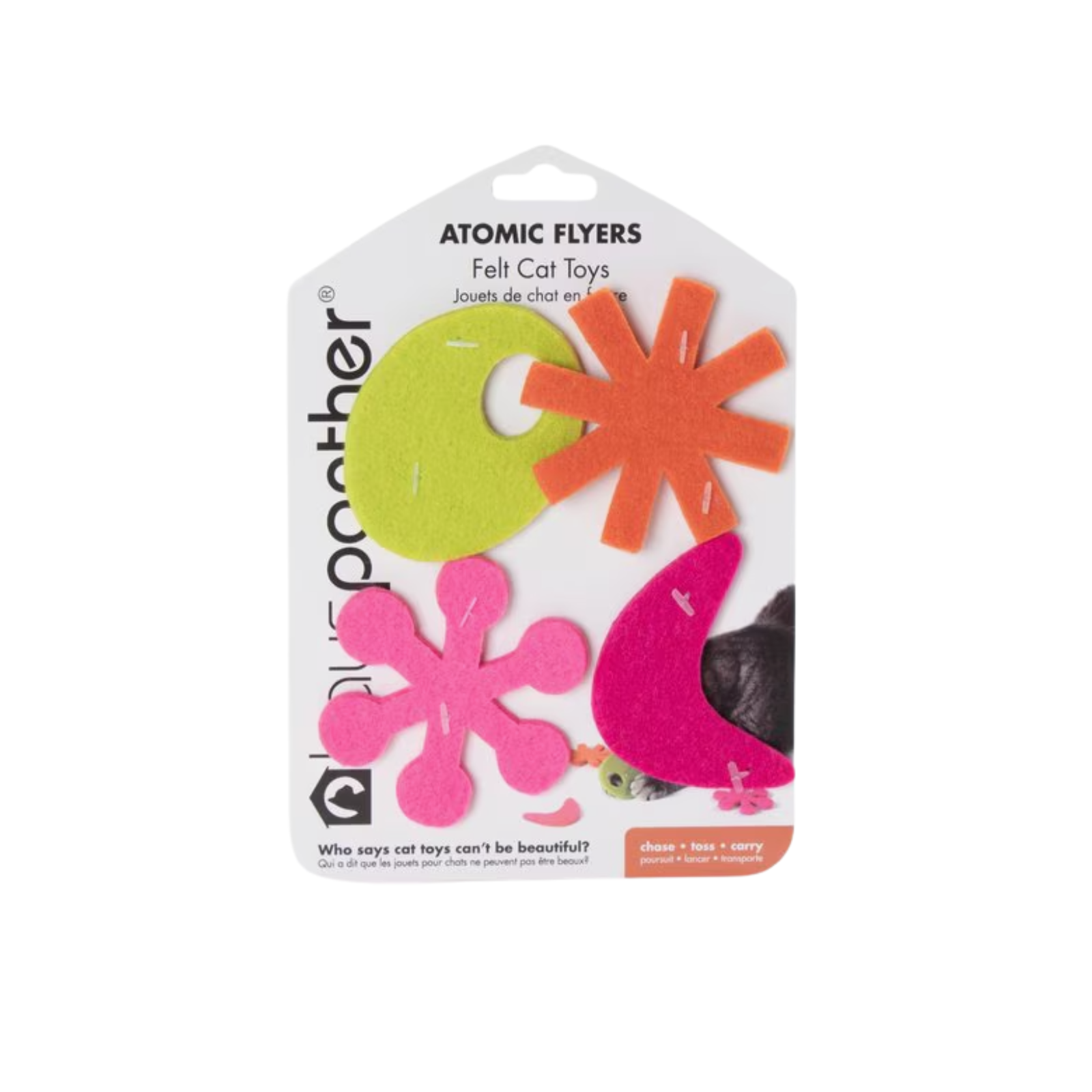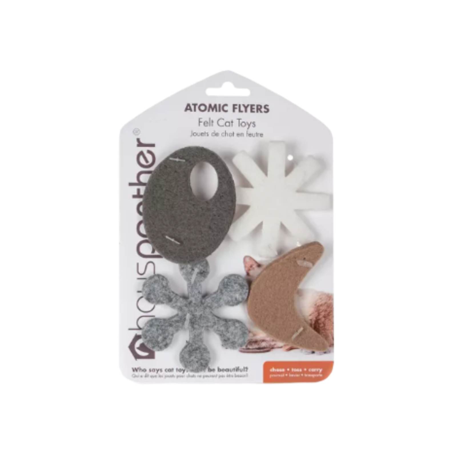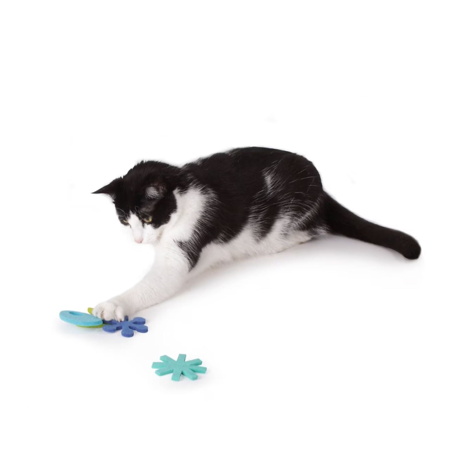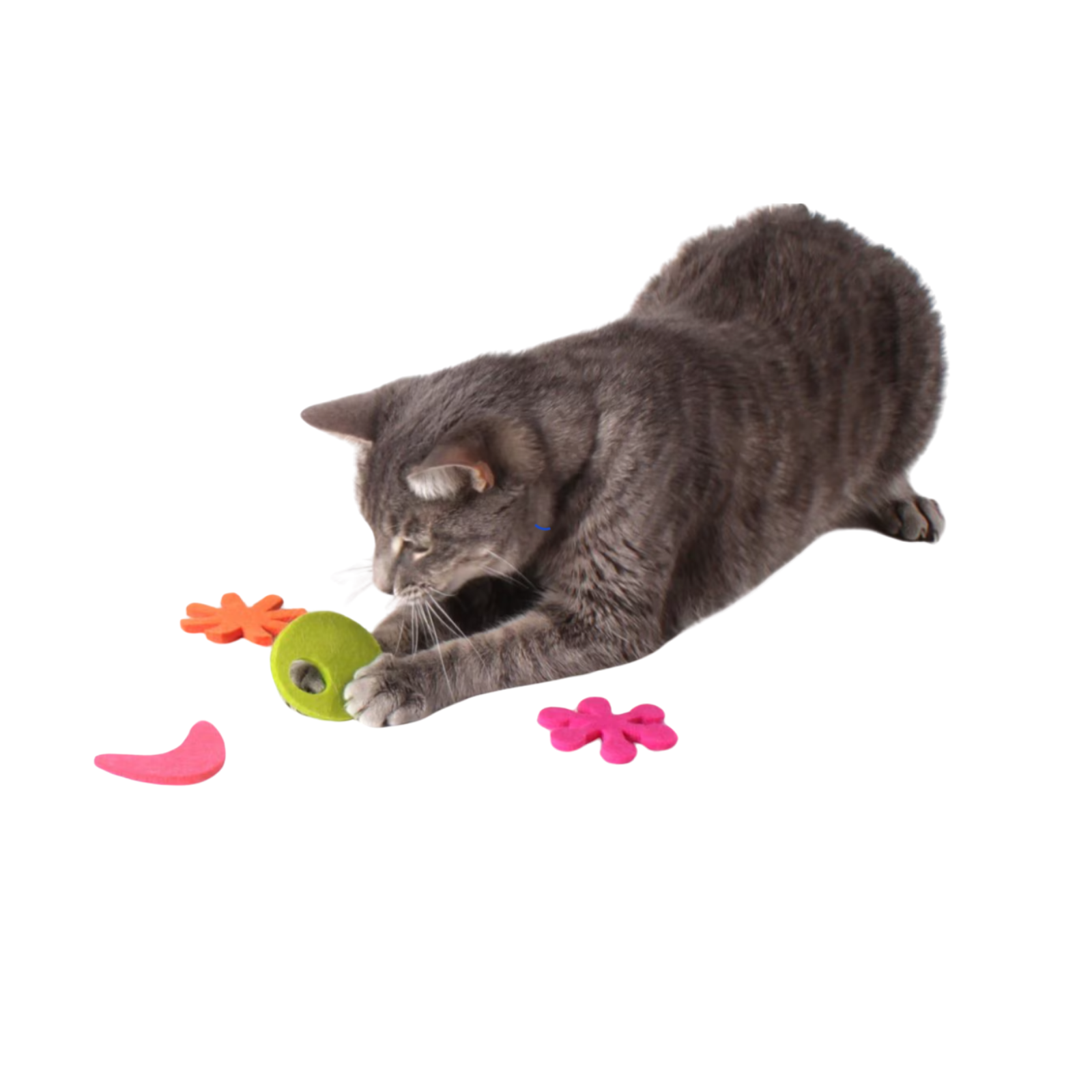 These little felt toys are perfect for sliding across the floor, enticing kitty to chase and pounce. Once she has ahold of one, watch as she tosses it in the air and carries it around. Cats love the felt texture and you’ll love the fun colors and shapes that make a little art installation on your living room floor. Who says cat toys can’t be beautiful?