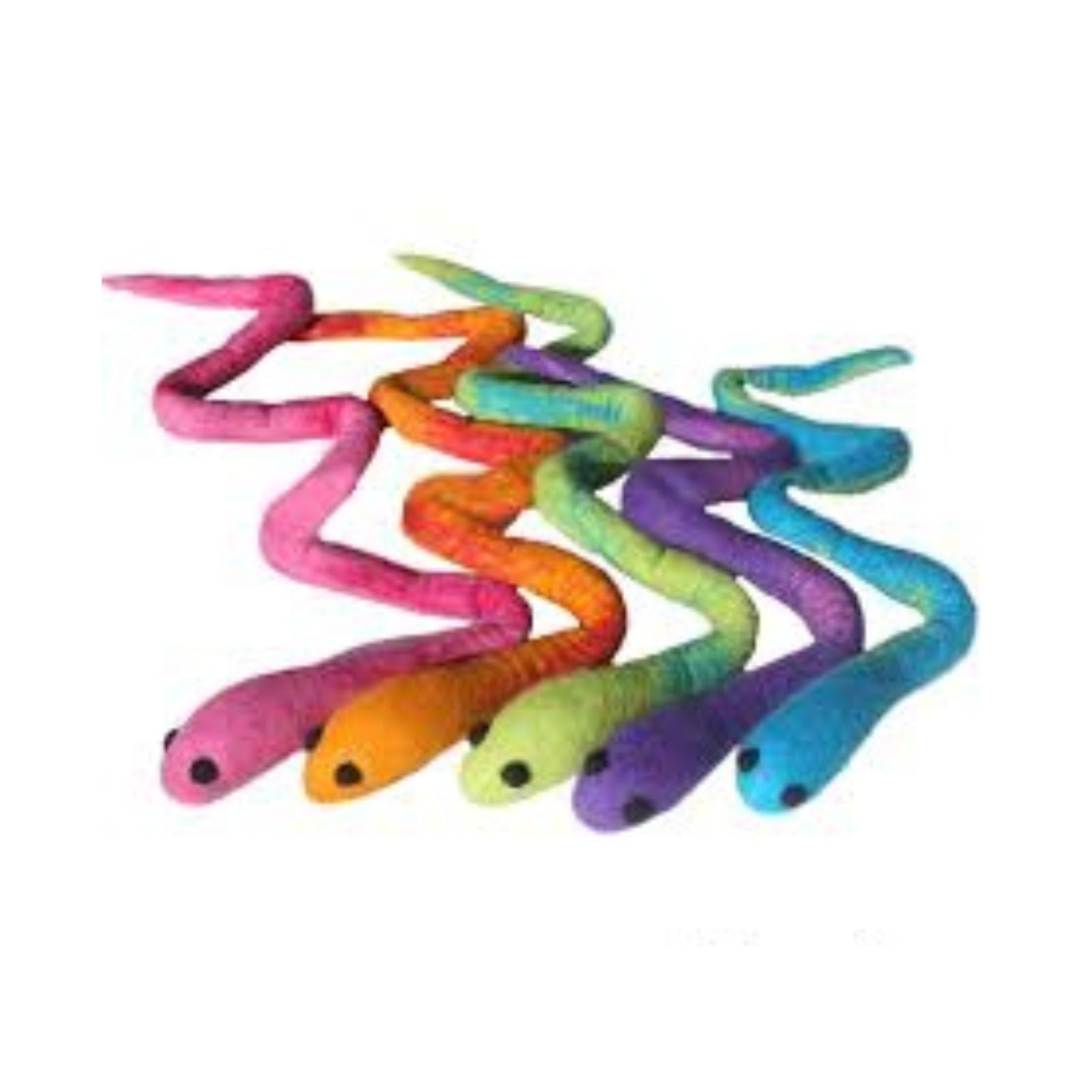 Lollycadoodle Boiled Wool Snake won't bite! It is 24" long and is great for tossing and tugging. Lollycadoodle uses 100% natural wool and natural dyes to provide a safe and environmentally friendly toy. These snakes are handmade by artisans in Nepal using a felting process which has been used for centuries to produce a durable material that is odor and dirt resistant. Wool is a sustainable material that is digestible, which is great for dogs that may accidentally ingest parts of toys. Lollycadoodle toys are proudly made in a fair-trade facility. Price is for 1 toy, image is to show an variety of colors you may receive. Colors Vary, Please let us choose what color to send.