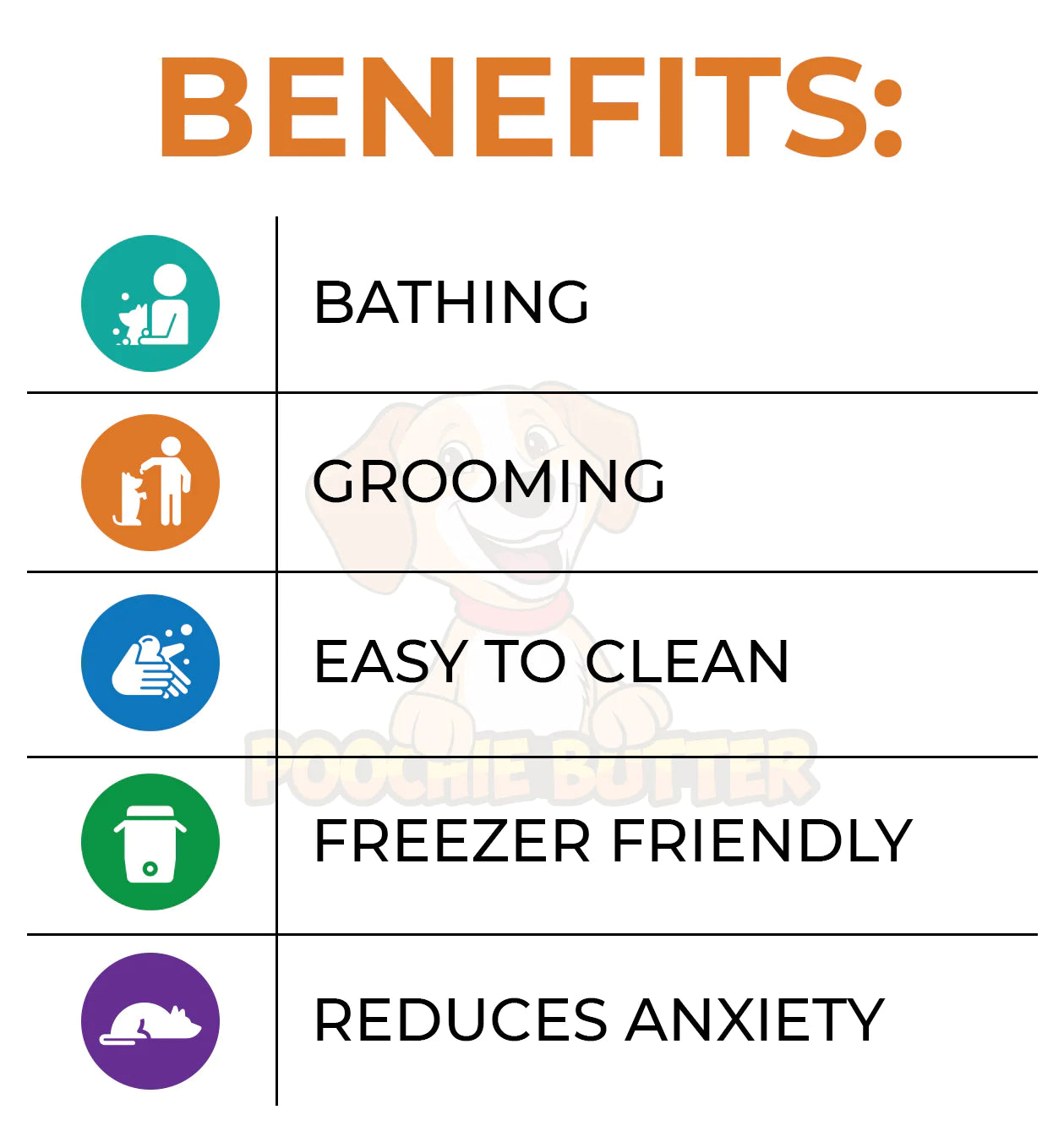 - One Oval Lick Mat and one 2oz Squeeze Peanut Butter