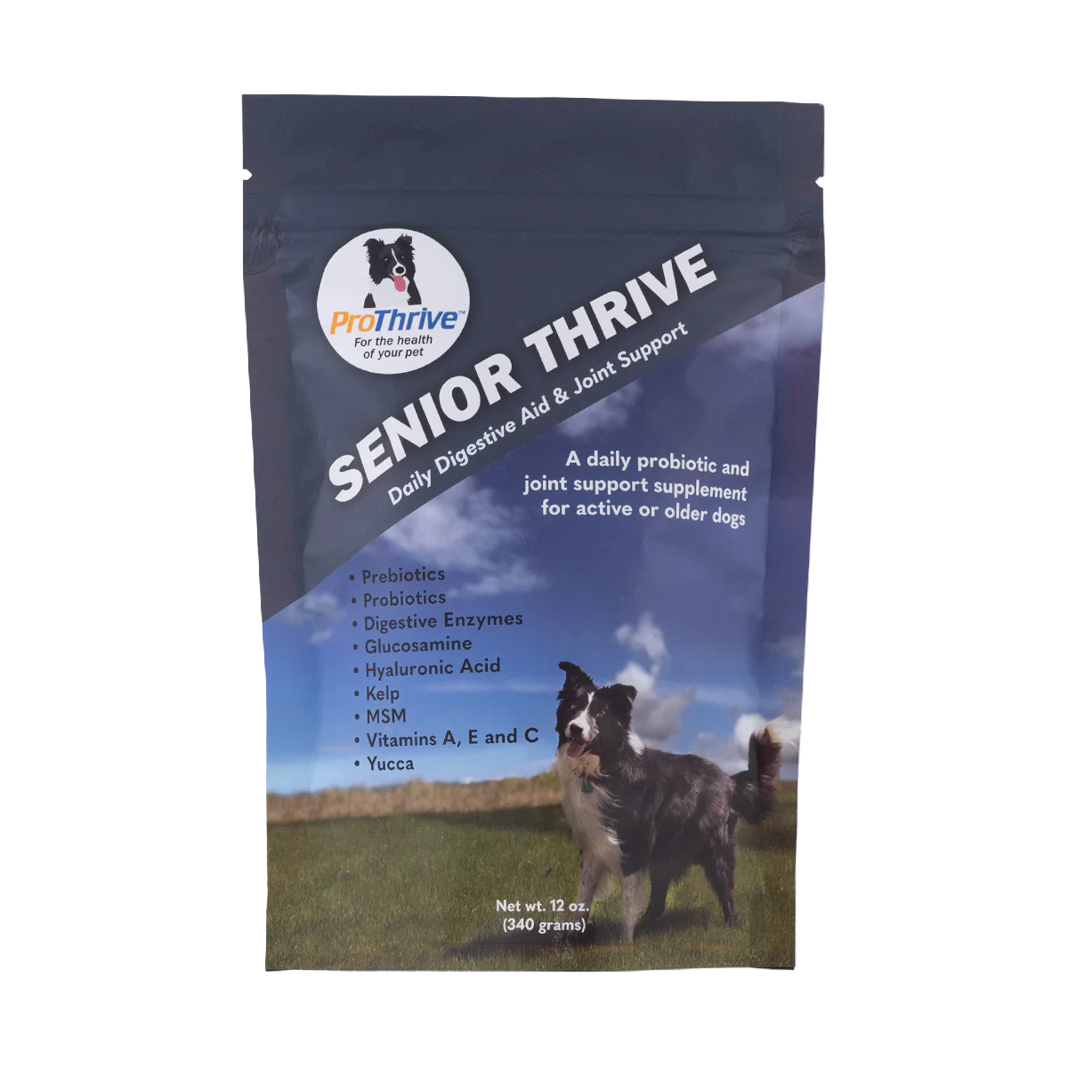 - ProThrive Senior is a blend of Microencapsulated probiotics and digestive enzymes to assist older dogs overall health.
