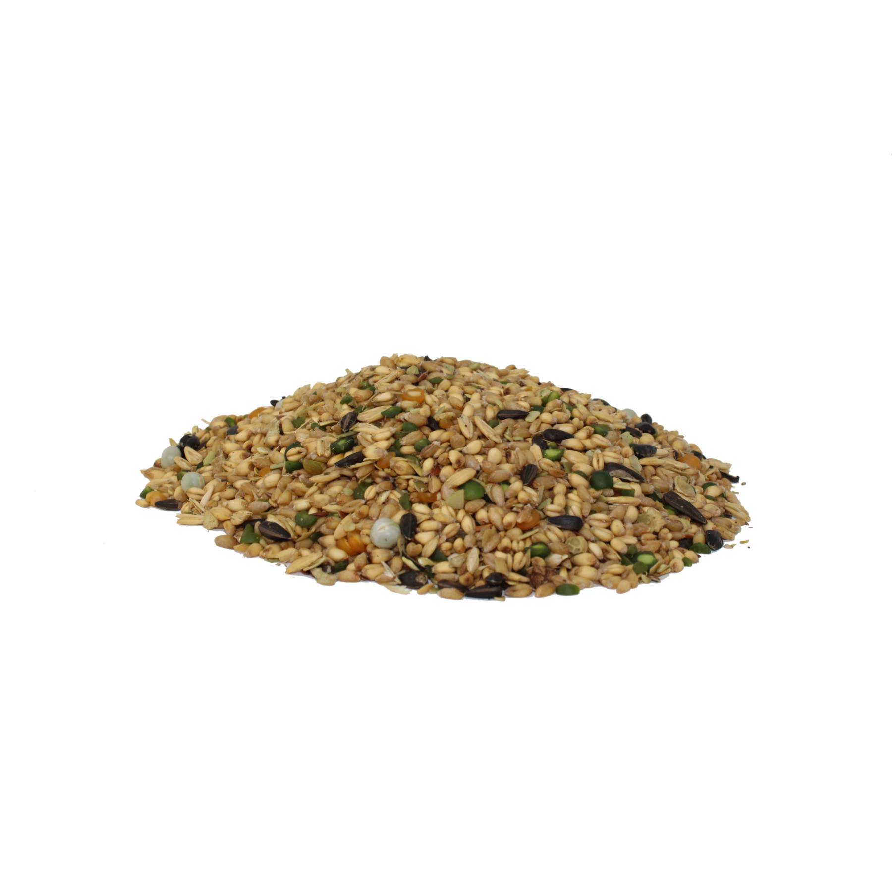 Another answer to feed a combination product like our ,Textured layer feed a combination of high protein pellets, grains and seeds with a light basting of high Omega 3 vegetable oil. This has the advantage of providing the fun and beauty of the whole grains (pleasing to both owner and bird) with the protein meal in a pellet form that ensures the birds will eat it and not waste it. Protein meals are just too expensive to end up on the ground. Whole beans have anti-nutritional factors that rule them out. Peas would seem to be the perfect solution -- right size, shape, and color -- but research and on-farm trials have been disappointing. Birds can’t be counted on to eat enough of them unless they are disguised in pellet form. We have the best of both worlds with a pellet and whole seed combination.
